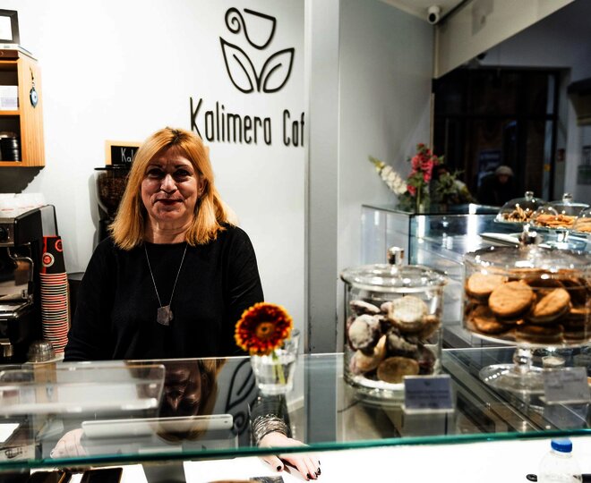 Der Duft nach frisch gebackenem Gebäck und aromatischem Kaffee entführt direkt nach Griechenland. Die herzliche Atmosphäre lädt zum Verweilen ein – und wer möchte, kann nebenbei seine Griechisch-Kenntnisse auffrischen.